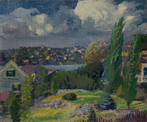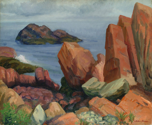The Philadelphia born realist painter Sloan (1871-1951), trained as a newspaper illustrator, traveled from New York to Cape Ann for summers of intensive painting from 1914 to 1918. At that time the journey represented considerable time and effort.