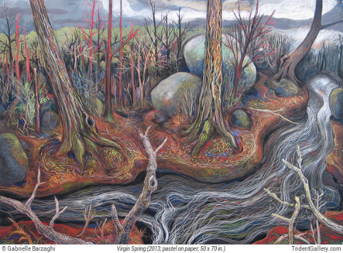 Dropping in on the gallery, which features the progressive artists of Cape Ann, it was a delight to see the expressionist, landscape pastel drawing of Gabrielle Barzaghi. There is another of her works currently on view in the permanent collection of the nearby museum. Now both retired we had been colleagues of the New England School of Art & Design at Suffolk University.