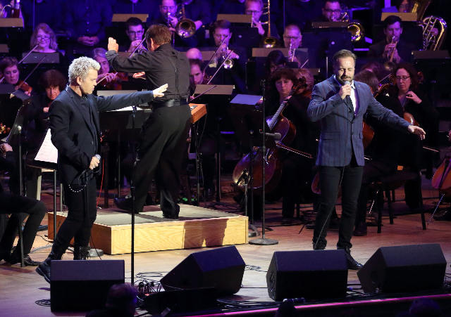 On many levels the evening belonged to Boe who has a rich and powerful voice. He belted out songs with pizzazz and hopped, skipped and jumped about the stage. He even fell to his knees and slammed down the mic storming off at pithy moments. While classically trained he is known for dramatic roles in West End and Broadway musicals.