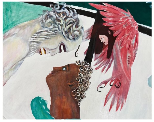 In the three painting series, depicting scenes from The Odyssey, Geschwer presents us with figures in simultaneous states of repose and chaos. The viewer is compelled to ask–who exactly was Odysseus? What is the true cost of war? What role, if any, does free will play in a world that subordinates everything to Fate?
