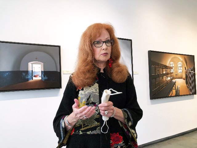 For the first time she is exhibiting a series of works with views of the Theresienstadt ghetto and concentration camp in Czechoslovakia. It was a rural village of some 3,000 with an 18th century fortress. The Nazis forced the first inmates to renovate it as a concentration camp.