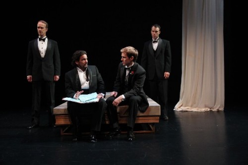This production strips away pieces of the play to focus on the love story with the political upheaval in Rome acting as the background. The minimalist style works well to tell the story, using only seven cast members and a simple set the emphasis is firmly on the title couple. The choice to use modern clothing, like tuxes and khaki pants and other present day elements, like the sound of helicopters, is distracting at times.