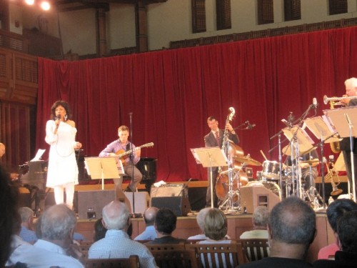The break of a niche between storms got lots of folks out of the house to dig jazz. Ozawa Hall was packed for afternoon and evening concerts and there was a good crowd on the lawn clustered around the open end.