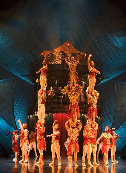 If the blur of acrobatics on steroids doesn't impress the audience, there are also the subtler touches. Even the handmade costumes with spectacular detailing are worthy of study, and the clowns and buskers are never completely still, being choreographed to add drama as each act progresses. The icing on this layered entertainment cake are the scenic elements, mostly billowing clouds of fabric and lighting that is almost alive.