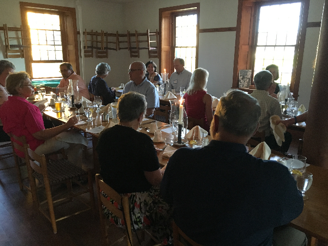 The ‘mission’ of the evening was to participate in a traditional Shaker Harvest meal. Before partaking in nature’s bounty, the group of close to fifty, rose and said Grace before the meal.
