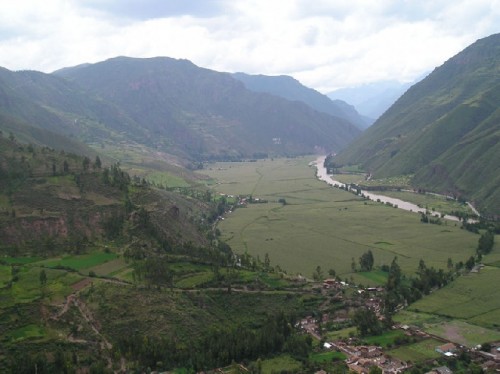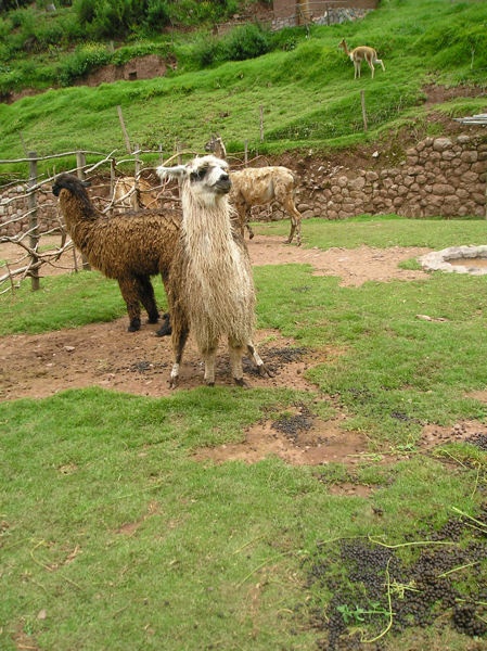 Early in the morning we flew from Lima into the high Andes and landed in Cusco at 11,000 feet. To ease our transition to the high altitude, we drove to Sacred Valley, where we spent two nights before returning to Cusco. However, we had to climb up to an elevation of 12,200 feet, and then began descending to the Valley. We passed mud brick houses, their roofs adorned with two ceramic bulls flanking a cross. Received as a gift upon building a new house, the bulls symbolize prosperity. Using ancient agricultural terraces, locals grow beans, grains, potatoes and other Andean tubers as the Incans did. We stopped to snack on tamales wrapped in corn husks and took pictures of grazing llamas. Of the four types of cameloids, the domestic llama is distinguished by its long neck. The others are the domestic alpaca, and the wild guanaco and vicuna.