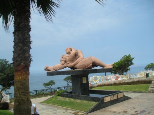 The next morning the full group met with Walter for another briefing. He introduced himself as a native of Cusco, where he studied history at university. He spoke Castilian and Quechua, both official languages of Peru. We sampled the national drink, pisco sour, which consists of grape brandy, lime, egg white, sugar syrup and bitters - refreshing. Later the visit to Larco Park was unique. Known as the Lover's Park, it has a larger than life size sculpture of a reclining couple kissing. A site for communal weddings, people were practicing for the kissing competition to be held later, as this was Valentine's Day.