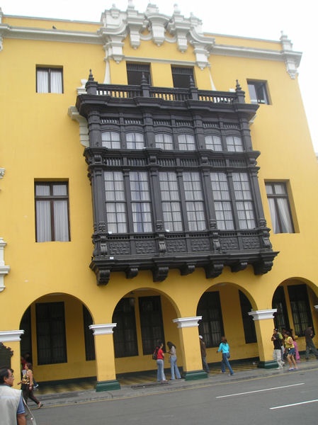 The city tour began with a drive through the upper middle class neighborhood of San Isidro. We passed by embassies and plentiful casinos, including one with the Statue of Liberty as a signpost. Walter pointed out the soccer stadium, bastion of an institution equally important as the Catholic Church throughout Peru. As we continued on to the old part of the city, the scenery changed from leafy suburbs to beautiful colonial houses in decay. Many had "for rent" signs for as little as $60 a month. As the city has swelled with rural immigrants to a population of eight million, hotels and businesses have taken flight to better-run districts. The Plaza Mayor, the colonial heart of the city, has been declared a cultural heritage site by UNESCO, which is restoring the vibrancy of the handsome square with a 17th-century bronze fountain in the middle. The buildings facing the plaza have been painted yellow-ochre, the color used in the colonial period.
