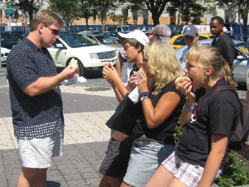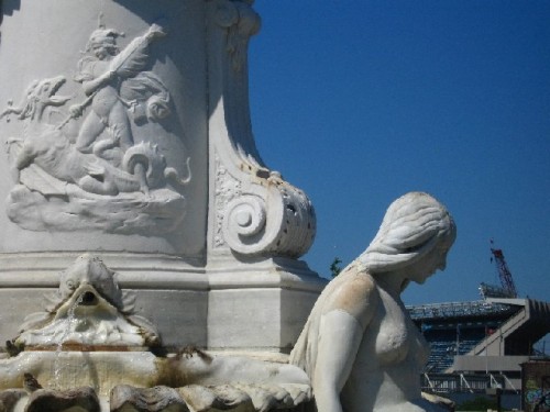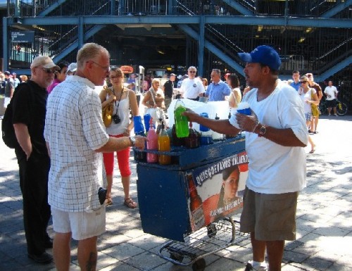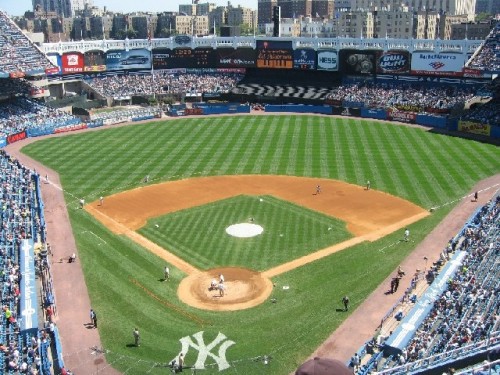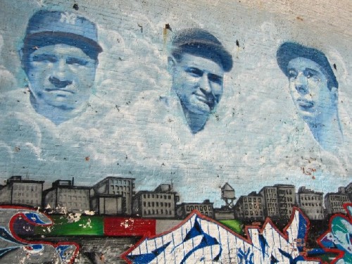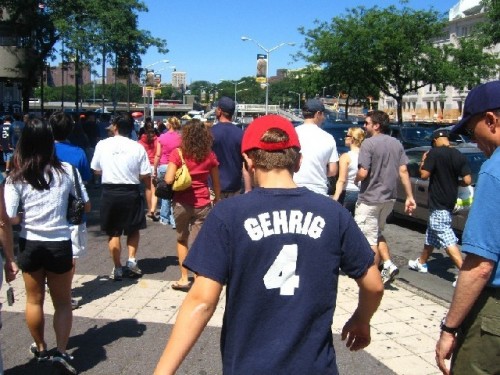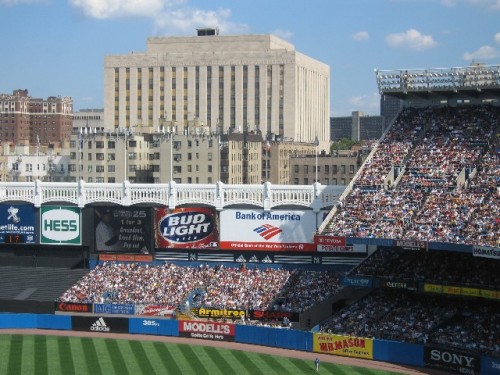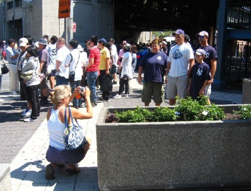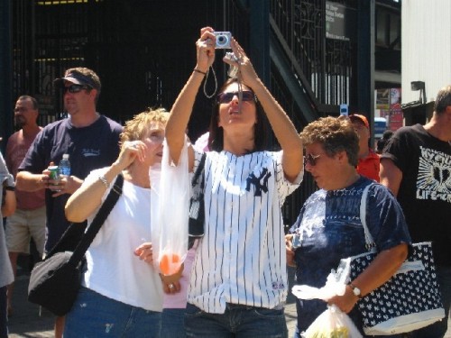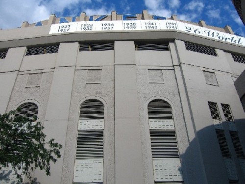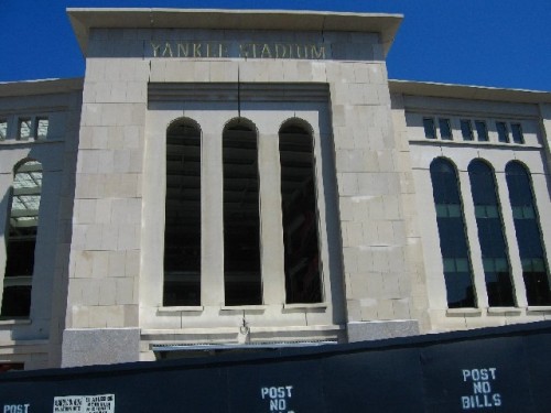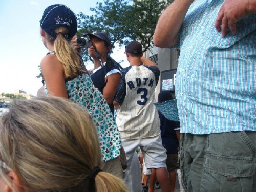 From the park across the street from the Courthouse I first spot the Stadium, its left field stands looming above the Bronx. I take a right down 161st Street, walk past the delis and bars and souvenir shops catering to fans, then under the elevated subway tracks to join the crowd milling outside before the game, getting a bite to eat and taking souvenir photos. The new Stadium is rising across the street, but I only give it a glance and take a snapshot. Because I'm here again, for the last time, at "The House That Ruth Built." The Babe was the star of the team when the field opened in 1923, constructed at a cost of $2.5 million. He was a hard living outsized celebrity who commanded the unheard-of salary of $80,000 a year. Today, Alex Rodriguez makes twice that for a single game.