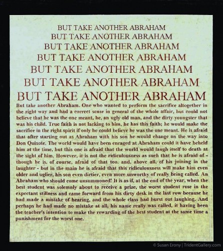 Not all who admired and studied this great philosopher were ready to discard the old ghosts, however. Kafka and Beckett, directing mirthless laughter at unhappiness, found precedent in those Old Testament stories of faithful men tested sorely by God. Kafka’s parable “On Abraham” confronts old questions of justice, humility, and suffering, which gain a new dimension of force through Erony’s post-Holocaust reiteration in.