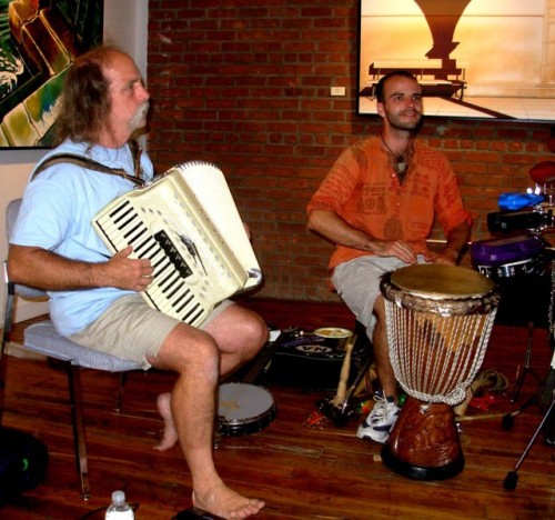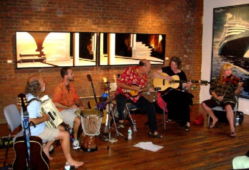 During the recent exhibition by Robert Morgan and Pennie Brantley at the Eclipse Mill Gallery there was a performance by the locally based Flown Home Band. The gig came about through Eclipse resident, Steve Borns, who showed the musicians Lisa Sturz and Fran Mandeville the large gallery space.