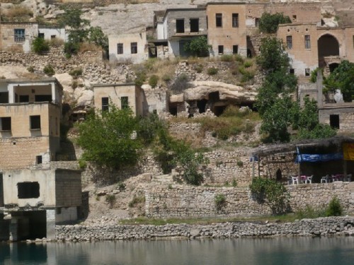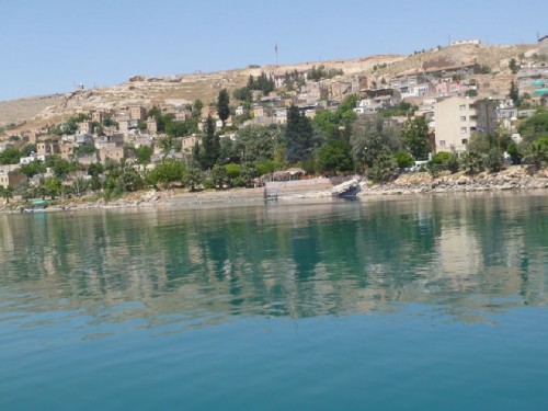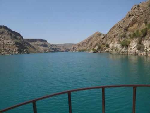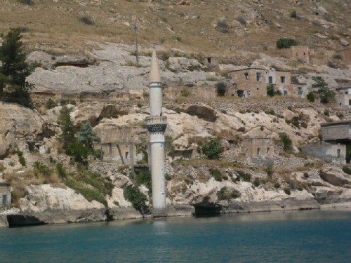 Driving east, we stopped briefly in Birecik to view the bird sanctuary known for its black ibis, and continued on to Halfeti, where we embarked our boat. We cruised to the Roman fortress Rumkale, built in 840 BC and dominated by many powers throughout history, and then to the sunken city of Savas Han, a victim of the rising waters of the dam project. A single minaret rose from the water at the edge of the river, its mosque submerged.