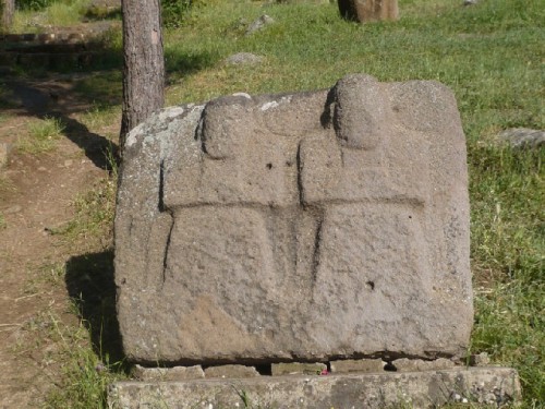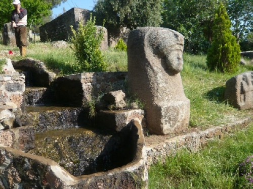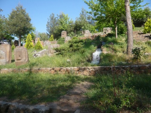 Heading back to Gaziantep, our tour guide, Nedime, led us to a wonderful discovery on the eastern slopes of Yesemek, a village 27 km. southeast of the town of Islahiye. In the Yesemek Open-Air Museum, we wandered amidst stone lions, sphinxes and mountain gods dating back to 2000 BC, the Hittite period. This location, discovered in 1890 near a quarry, was the Near East's largest sculpture workshop, where basalt blocks were roughed out and shipped unfinished to other destinations. The visually exciting walk-about shows the rough-outs in different stages of production.