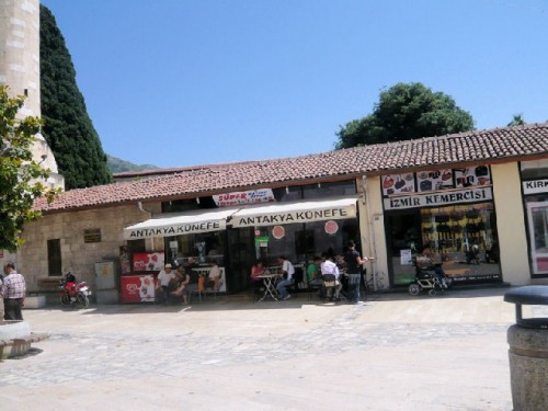 Lunch was at Anadolu Restaurant in the old town center, where we enjoyed Antakya's famed grilled chicken, and other local specialties, such as fresh thyme salad, humus thickened with lots of tahini and kunefe, a dough-based dessert filled with melted cheese and soaked in syrup. The city center, lined with cafes, featured signs for kunefe to entice passers-by. There is not much evidence of the old metropolis in the modern city due to terrible earthquakes and floods, and excavations are hindered by the fact that the city is built over the foundations of the ancient settlement.