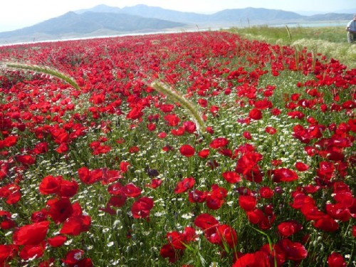 During our three-hour scenic ride, heading west and then south, we passed by farmlands of wheat, barley, chickpeas and lentils. Tents of seasonal workers dotted the countryside of olive and pistachio groves alternating with vineyards. Red poppies intermittently blanketed the landscape. Near snow-capped Mount Nur, we turned south. From a distance a minaret signaled Islahiye, a town of charming fruit gardens surrounding brick houses, where carpets hung from their balconies for daily freshening. As we traveled south, solar panels appeared on rooftops and olive groves gave way to cotton fields, with textile factories joining in the scenery. On a hillside a slogan - "once vatan", meaning, "homeland first" - played up the patriotic sentiments of the locals.