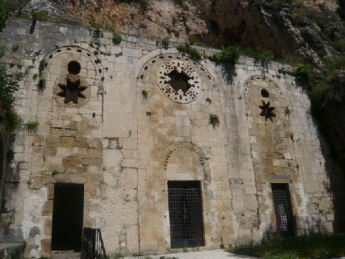 Our visit to the church was my fourth, my first having been with our history teacher when I was a junior in high school. I have a class photo taken in front of the church's oriental façade, made of local stone during restoration in 1863. It is believed that the grotto was given to the early church by Luke the Evangelist, a native of Antioch. Traces of the original floor mosaics remain; an earlier wooden altar was replaced by a stone one, above which the white marble statue of St. Peter sits in a niche. In 1990 the "seat" was installed behind the altar to recall the "Chair of St. Peter in Antioch". The Capuchin fathers, representatives of the Catholic Church in Antioch since 1846, celebrate mass there on the main festivals of the liturgical calendar, including midnight mass at Christmas. Proclaimed by the Vatican as a holy place in 1983, the grotto is nestled in a hillside with sweeping views of the modern city below.