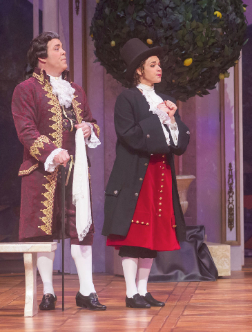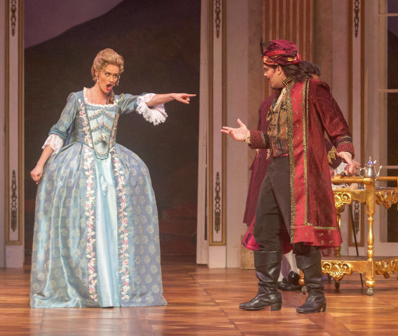 The score overflows with ensembles of various sizes, which in this production takes advantage of the well matched voices. Some arias stand out as well. David Blalock, as Ferrando, caresses the beautiful “Un aura amarosa” about the absorbing atmosphere of love. As Fiordiligi, Amanda Kingston proclaims her fidelity scaling the challenging “Come scoglio” with its great range and leaps – both high to low and low to high. Colin Ramsey as Guglielmo, Cassandra Zoé Velasco as Dorabella, and Maria Valdes as Despina are also equal to the task.