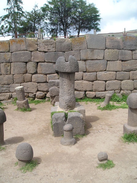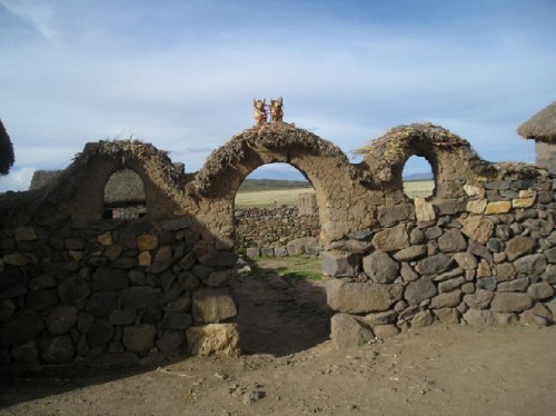In the morning our local guide taught us a few words in Aymara: "kamisaraki" (how are you), "valiki" (well, thank you), and "yuspara" (thank you). We used these words, accompanied by a handshake, consistently in greeting and thanking villagers during our visits. The day's excursion began at our home base in Chucioto with its notable Incan fertility temple - an enclosure of giant stone phalluses, some broken, some intact. Peruvians practice a composite religion that combines elements of Catholicism with ones of pre-Columbian pagan rites. The nearby Catholic Church has on its roof two phalluses, one of which has been knocked down by lightning.