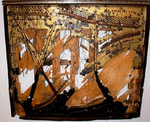 The shot up piano was hauled into the gallery where Bradshaw intended to mount it on a wall. Joe, an attorney, with a concern for injury and liability, argued against that. "It may fall and injure somebody," Joe said. Then he suggested stanchions and velvet rope. But Bradshaw countered that it was a gallery and not a theatre.
