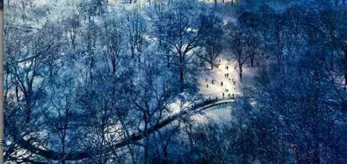 Light of course changes as time passes. New colors are created. The sunshine gold of taxicabs and the blue of the Atlantic Ocean or the bluish white of snow-covered trees in Central Park all are of unusual tint. The quality of texture, one of Wilkes’ fortes, is most clear in the park trees. You feel like you are in an entirely new space and world.