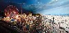 Curiously, Wilkes captures “the chance immediacy of a fleeting moment,” but he does this in a thousand images shot from exactly the same position in a cherry picker hanging over an iconic scene at an angle and a perspective the pedestrian would never see. These images are blended in photoshop. Because each image contains so much that is unexpected, the ordinary seems extraordinary. Wilkes may start in control, but in fact the assembled images capture impermanence and random happenings.