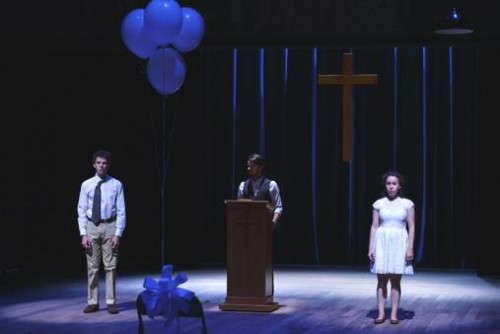 Miriam has been asked to direct a production of Arthur Miller’s play “The Crucible” using high school students. Once rehearsals begin her vision and style of directing sets off a firestorm of controversy with school officials, parents, and the ire of local Christian youth counsellor Luke (Ian Littleworth) to the point that the production is in danger of being cancelled. Cast members Katie (Christina Gerla), Matt (Austyn Meyers), and Crystal (Katie Sapper) are beginning to discover new feelings and insights in themselves through the characters they portray in this play within a play. Their hope is that Miriam will stay on and continue with the show.