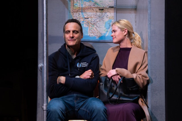 The set by Michael Gianfresco is a clever combination of living room, hospital room, subway car and park. The central living room is on a platform and the actors step off it to exit to the next scene instead of going through doors. It works.