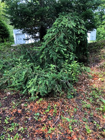 The firm, Steep Acres Landscaping, was interested in developing the property and decided on a plan, which they followed. One thing had to be addressed in order to prevent plants from dying: The harsh winter-weather arrives from the west, and so three long hedges were installed, which cuts the garden into distinct areas and protects plants and trees from the icy weather. On the roadside a berm, a rounded mound of soil and stones was built up, and a series of evergreens were planted that would withstand dirt and salt.