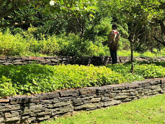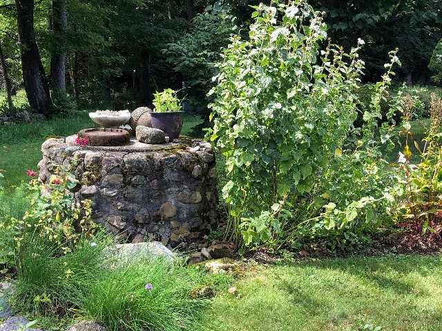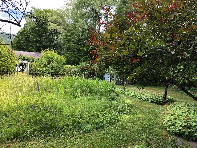 In past years, Victoria began considering her gardening also as an art practice - and she is not alone there. She and I have met other visual artists, who consider their gardens also works of art. And, she has more seriously thought about pollinators and wild-life. Many birds nest in her trees and she is more aware of migration patterns. She talked about a cardinal with a deformed beak. The bird would return for several years until -- not again. Victoria does not feed birds during summers; however, she does in winters. We talked about bats, that have not returned in some years. There is a bat cave near Putney, Vermont, which has been closed. The bats there had contracted a disease and so it was shut to limit a wider spread.