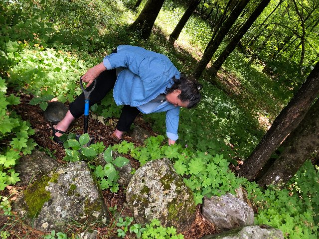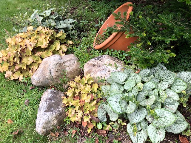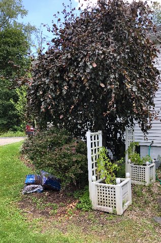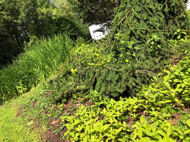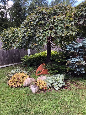 She is constantly reevaluating areas of the garden and if a plant, a new plant, does not fit into her intended design, it gets moved. Or, as I wrote earlier, trees and bushes need cutting or pruning. She attempts to spend work-time in the garden every other day. And she continually pulls weeds; there is no end to that, as I can attest.