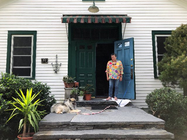 Small picturesque spots around the entrances now hold her indoor plants, which will return to their winter places in the spacious living room and kitchen, and perhaps other spaces.