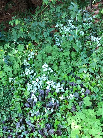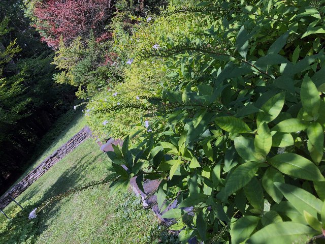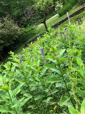 In past years, Victoria has employed landscapers for 1 to 2 weeks and she hires a high school kid, girl or boy, and trains them to work well in her garden. “Good training for life,” with which I agree, thinking of our grand-children, who have had summer jobs in the last few years. She proudly told me that her high-schoolers usually stay for 3 or 4 years and several have done well in life: from doctors, to an oceanographer, to an owner of a river rafting company. She pays them well while they work two to four hours each summer week. They are mowing grass, digging holes, climbing a ladder, which she holds onto directing smaller tree cuts, and, of course, weeding.