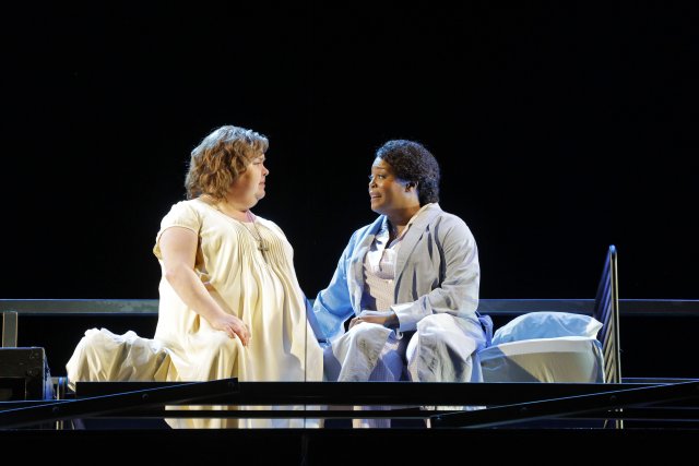 We then jump to the final month before the execution, when Joseph de Rocher calls upon Sister Helen Prejean, a nun previously unknown to him, to comfort him. The wonderfully cast Ryan McKinny is chilling as the vile Joseph, having a deep, expressive baritone voice delivered with menace and an authentic sounding Louisiana accent. Though he seeks grace and deliverance, he verbally abuses and disparages those whom he asks for help. In his aria “A warm night” when he first meets Sister Helen, he shares his sexual desires and conquests with her, showing contempt for her station.