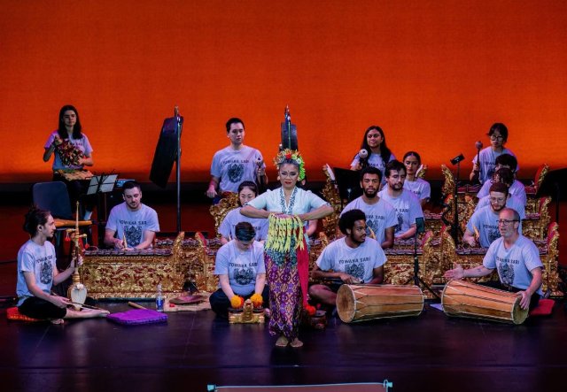 The Balinese gamelan ensemble Gamelan Yowana Sari performs with guitarists Kyle Miller and Jack Lynch.