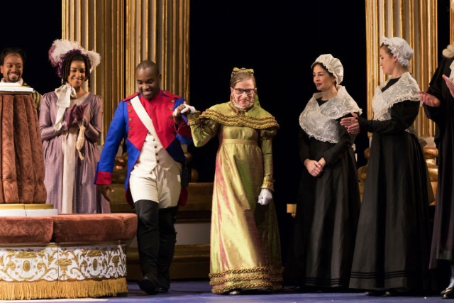 Judge Ginsberg would appear on the opera stage, in a cameo role as the Duchess of Crakenthorp in The Daughter of the Regiment. Her character sees justice come to the heroine of the work, as the truth of parentage is revealed.