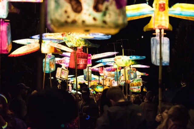 Anthropologist Alessandro Falassi uses that expression to convey how our experience of time is altered and dilated in a festive rituals, similarly to how we dream. To us, it implies that a space activated by processional performance is transformed, not just for the duration of the performance but permanently in memory, as if the memory of the moment soaked into the pavement and the space can never be seen quite the same way again. When processions become annual events, this only reinforces the altered image of a public space, adding layer after layer to memory left in the wake of each repeated performance. For those who have witnessed Mornigside Lights, either as participants or passers-by, the experience of the Park is inextricable from the lingering afterglow of giant lanterns on the move.