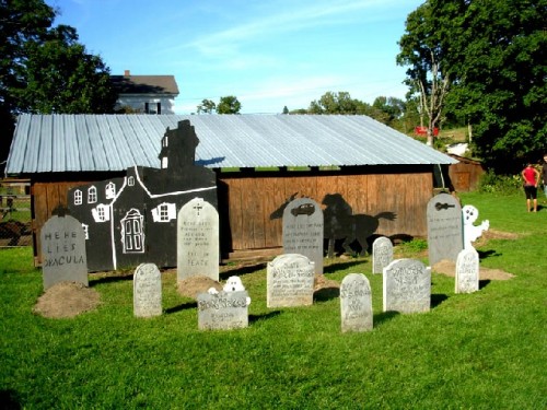 Poking around there are lots of creepy things appropriate to the Halloween spirit. There is an ersatz grave yard with the tombstone of Dracula. There are lots of ghosts and goblins as well as some full scale tractors and things to crawl over and around. There is a stand to buy snacks.