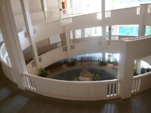 While the rest of my group toured the famed temple complex of Banteay Srei, 18 miles northeast of Siem Reap, I opted to visit the new Angkor National Museum. I had seen Banteay Srei during an earlier visit, and would recommend it for its fine pink sandstone carvings and the meticulous detail of its classical Khmer statuary from the second half of the 10th century. Banteay Srei, which means ‘citadel of women’, has shrines dedicated to Shiva and Vishnu. The main themes of the elaborate carvings are from the Hindu epic, the Ramayana. Buns, loosely draped skirts and jewelry characterize the female divinities, lances and loincloths the male ones.