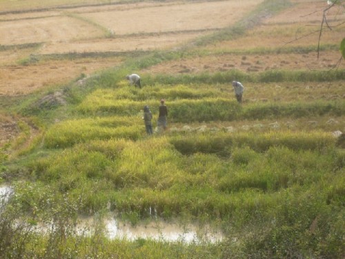 Farming and fishing provide the villagers’ livelihood. The government has given each family five acres of land, which in turn is sold to agricultural industries. There is no electricity or running water in rural areas; people use oil lamps and run their televisions on a generator; they collect rain water or pump water from a well. Trash is either burned or buried.