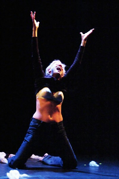 Dust To Dust, less a play, more a performance piece, is not too far removed from the work of performance artist Karen Finley who like Hess has the uncanny ability to turn the makings of her words, as well as the workings of her mind and body – one minute she’s sane, the next crazed, one minute fully present, the next in another world – into an hallucinatory, roller coaster ride, not unlike watching a flickering strobe light.