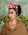 Entering the galleries of the Institute of Contemporary Art, Boston we are immediately confronted by a large tondo of the ever exotic Frida Kahlo. Her enigmatic grin gazes out at us from within an elaborate kitschy frame of embossed vegetation. But, hold it, that is not the iconic image of the Mexican artist and martyr, no not the beloved, Frida, but rather, the Japanese artist, Yasumasa Morimura, once again in drag.