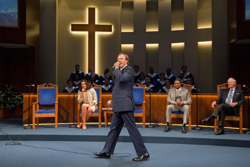 This is the mega congregation which Pastor Paul (Andrew Garman) has nourished and built from store front to sprawling complex with school, gift shop, and baptismal font as vast as a swimming pool.