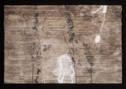 But he reminded me that a studio visit is “privileged” as the work may always change. What was going out the door, or seen at Nielsen Gallery last fall, is different than a large work currently in process that has the layering and whiting out of the past but also some sharply rendered highly realistic references to historic native photographs. His mother is deceased and his father is in poor health. This has prompted him to think of the elders and their history. We sat before a large current painting and looked at it long and hard. In addition to a whited out image of historic content, and very sharply rendered details, there are also small objects, little toy heads and an odd form attached to the surface. This “abstract” object reminded me of Mickey Mouse. “Precisely” he responded. It was a packing vacuum for a Mickey object that looks sliced or amputated. This recalled a confluence of native and pop imagery in a show of recent works on paper by Jaune Quick to See Smith that I curated this past season.