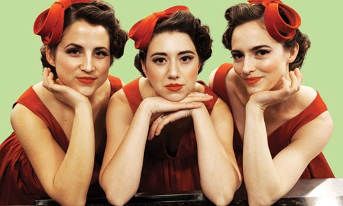 The Bandana Splits bring nostalgic charm to MASS MoCA's Club B-10 on Saturday, October 6, 8 PM. The Brookyn-based trio -- Dawn Landes, Lauren Balthrop, and Annie Nero -- recreates the bubblegum pop and doo-wop styles of the 1950s and '60s with upbeat three-part harmonies featuring ukuleles, guitars, and even kazoos.