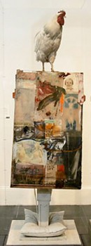 For me, the work of Rauschenberg has always been personal. The first work of the combine series I encountered “Odalisk” (1955-58) occurred in the early 1960s when I was an installer for the Exhibits Librarian at Brandeis University. There was a traveling show on the theme of Neo Dada art. The piece came in an elaborate hard case which we carefully unpacked. At the time, the container seemed even more complex and interesting than what it contained. The piece, now owned by the Ludwig Museum, seemed strange, comic and even absurd. It was hard to take seriously. Was that really a stuffed chicken perched on the top of a flimsy box covered with collage and splashes of paint? How and why was the narrow base of this construction piercing a pillow painted white? There was nobody to explain it to me but it has been stuck in my head all these years. What a jolt for a young guy being taught art by professors whose ideas were as old as they were. Nobody wanted to talk about this brash new work. The professors were teaching us how to be social realists and abstract expressionists. But this piece really rocked my boat and nobody wanted to discuss it. How art school.