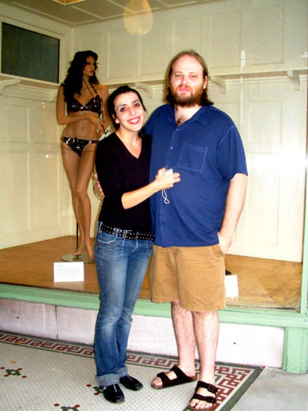 When the artists moved in a year ago they were excited about the potential of the elegant storefront of their home which was formerly a clothing store. It has a vintage oak interior with classic tin ceiling. They are trying to adapt the space for exhibitions while not disturbing the unique architectural detail of their landmark building. So what we find here is not the usual white cube of most contemporary galleries.