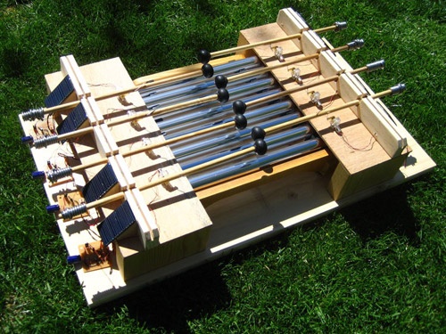 The "Solar Xylophone" by Rory Nugent is a solar powered, solar controlled, autonomous, musical instrument. The xylophone was designed with hopes of using renewable energy as a responsible way of powering the piece but also as a powerful theme to drive its artistic elements. It plays whenever sun is available with an unpredictable string of notes. So that is certainly stretching the notion of music in a manner that might have interested the late John Cage and his use of "chance operations."