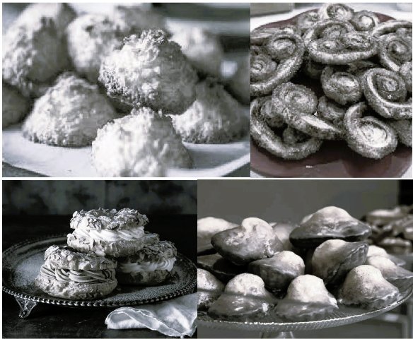 Rafael: In French bakeries––my God, what a display––my eyes wandered over the sparkling glass shelves with all those pastries on show, so many shapes and sizes and flavors, the Paris-Brests, the pains aux raisins, the croissants aux amandes, and the congolais. Ah, those were the worst, a pure sugar high, the best thing to have when you got the munchies after smoking a joint. The congolais was a conic shaped, little mountain of ground coconut and a lot of sugar, and there were the palmiers too, financiers, and the madeleines.