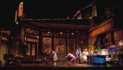 At the beginning of a new season, it is hoped that the first production for a theatre company is a booming success. Unfortunately, the Huntington Theatre Company’s production of William Inge’s Bus Stop is a bit of a bus wreck, not just a minor fender bender, but a rear end collision. Directed by the usually astute Nicholas Martin, the Huntington’s and Williamstown Theatre Festival’s former artistic director, the play is visually appealing but harmonically challenged. This interpretation of Bus Stop is simply not prose poetic or rhythmic. The production is theatrically off-key. Designed by James Noone, the set is big, bold and rather beautiful, even overwhelmingly so. So big, that it at times seemed to literally submerge the actors.