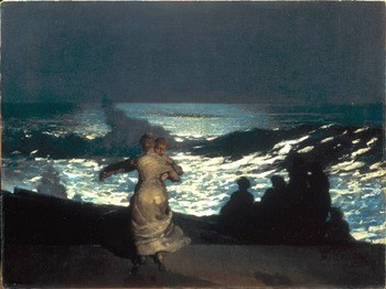 For now, let us count our blessings. What’s not to like about having Whistler’s “Arrangement in Grey and Black, No. 1, Portrait of the Artist’s Mother” (1871) as a summer long visitor from the Musee d ‘Orsay? It was, at the time, one of only a few works acquired by the French, state run museums by a living artist, let alone an American. Another was Winslow Homer’s haunting and enigmatic “A Summer Night” (1891) that shows two women dancing against a background of moonlit surf. It is also on loan from Paris.